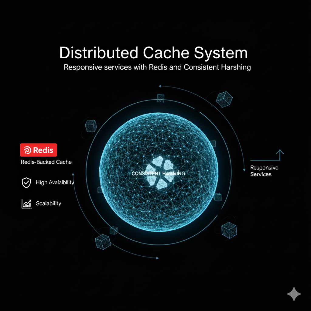A Redis-backed distributed cache with consistent hashing that keeps services responsive even as nodes ebb and flow across the cluster.